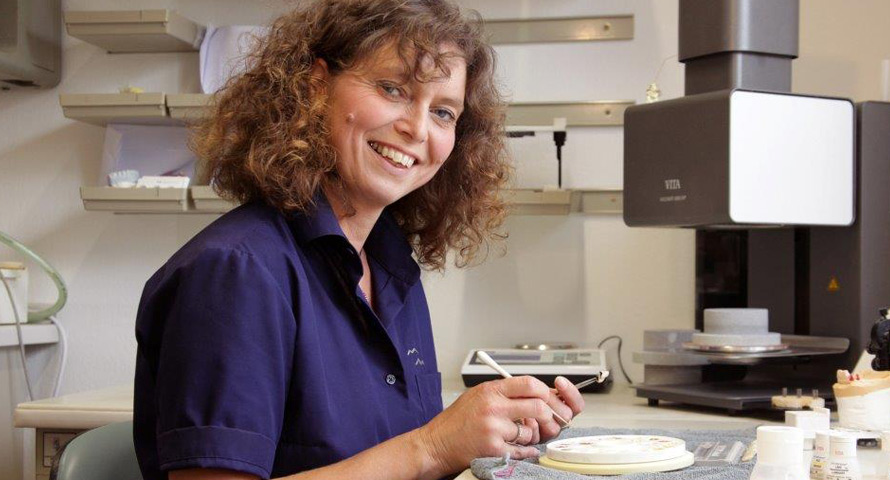 Unsere Zahntechnikerin, Frau Sabine Rahn, kann zum einen gemeinsam mit Ihnen Ihre individuelle Zahnfarbe auswählen. Zum anderen lernt sie Ihre Mundsituation kennen und kann so Ihr persönliches Zahnersatzdesign perfekt planen.